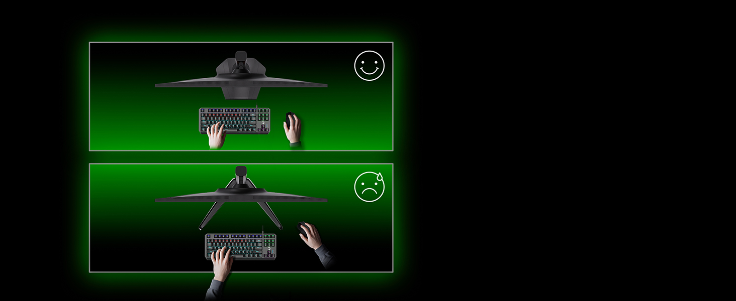 The compact Lunis stand takes up less space on your desk, leaving more room for your keyboard and mouse.